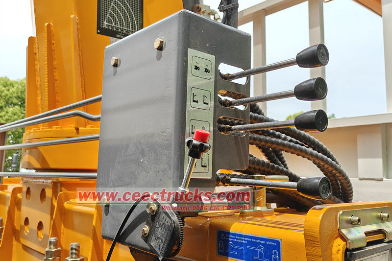 ● Hoạt động của cánh tay kính thiên văn: Cần trục 4 đoạn được kéo dài từng đoạn thông qua xi lanh thủy lực, bán kính hoạt động mở rộng có thể đạt tới 16 mét. Đầu cần trục được trang bị khối ròng rọc và dây cáp để nâng vật nặng.