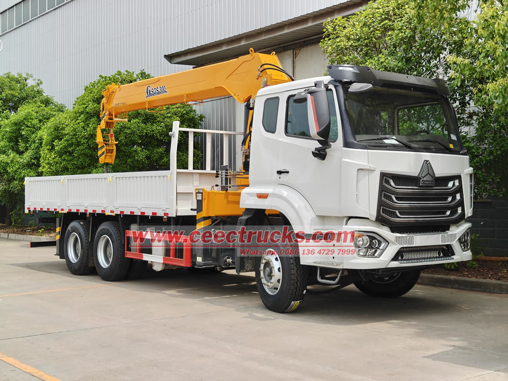 Cần trục sử dụng thiết kế dạng gấp hoặc dạng ống lồng nhiều đoạn, hoạt động xoay 360° và được trang bị hệ thống thủy lực để điều khiển chính xác. Xe tải Howo có cần cẩu nâng 12 tấn kết hợp khả năng cơ động của xe tải với chức năng của cần cẩu. Nó có thể thích ứng với các hoạt động tại địa điểm hẹp và giảm đáng kể chi phí nhân công và thiết bị. Đây là thiết bị quan trọng trong lĩnh vực hậu cần và kỹ thuật hiện đại.