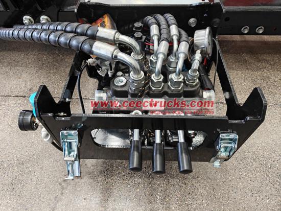 Dầu áp suất cao này được truyền qua đường ống thủy lực đến các xi lanh thủy lực, điều khiển chuyển động kéo dài, xoay và nâng/hạ của tay móc, đồng thời kiểm soát việc đóng mở cơ cấu khóa để móc, nâng và cố định thùng rác. Toàn bộ quá trình được điều khiển chính xác bởi hệ thống thủy lực, đảm bảo chuyển động trơn tru và liên tục.