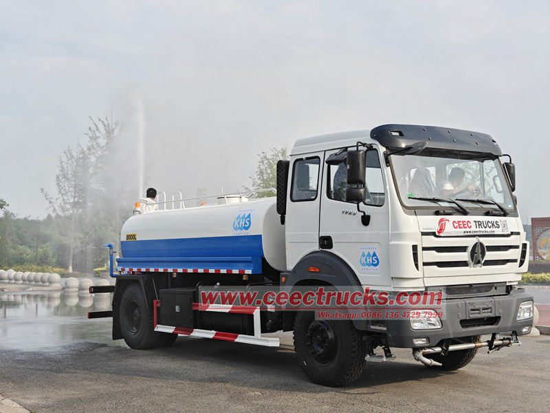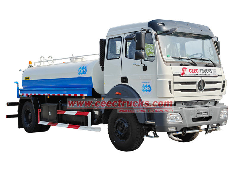Xe chở nước Beiben 10cbm (còn gọi là xe chở nước Beiben, xe bồn nước Beiben 1929, xe chở nước di động Beiben 4x2, xe chở nước Beiben, xe phun nước Beiben 1929) Được sử dụng để vận chuyển và cung cấp nước, bất kể nước công nghiệp hay nông nghiệp. Được trang bị bình chứa nước dung tích lớn và hệ thống phun nước áp lực cao, máy có thể thực hiện các chức năng như giảm bụi đường, tưới tiêu xanh, làm mát và giải nhiệt, và chữa cháy khẩn cấp thông qua nhiều chế độ hoạt động như phun nước bên hông, phun nước phía sau và đầu phun áp lực cao.