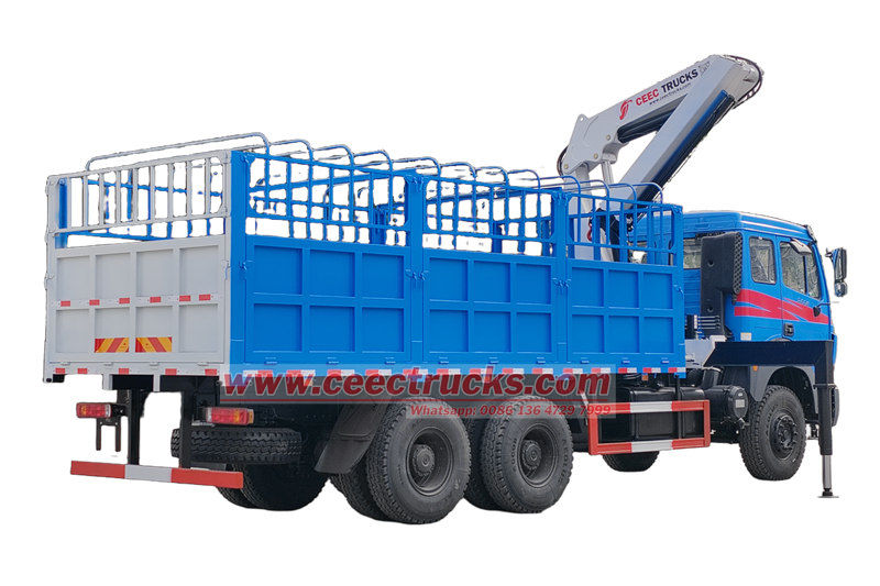 Xe tải chở hàng Beiben 2638 có cần cẩulà thiết bị hiệu quả tích hợp nâng hạ và vận chuyển. Đặc điểm cốt lõi của nó là thiết kế cần trục gấp, tiết kiệm không gian đáng kể và có khả năng cơ động mạnh mẽ. Được điều khiển bởi hệ thống thủy lực, nó có thể đạt được hoạt động xoay hoàn toàn 360°, phù hợp với các công trường xây dựng hẹp hoặc điều kiện đường xá phức tạp.