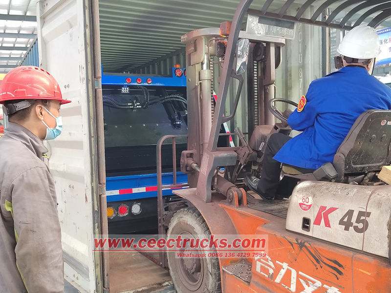 Dỡ hàng: Khi đến nơi dỡ hàng, lưỡi đẩy sẽ đẩy rác ra khỏi cửa sau của thùng hàng.