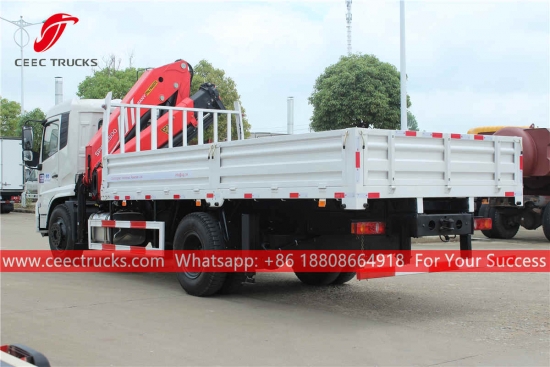 Xe tải chở hàng cần cẩu 10 tấn, khung gầm Dongfeng 4×2, hộp số tay 8 cấp NHANH CHÓNG, động cơ diesel CUMMINS 190HP, kích thước thùng hàng tùy chọn, sơn và logo tùy theo yêu cầu.