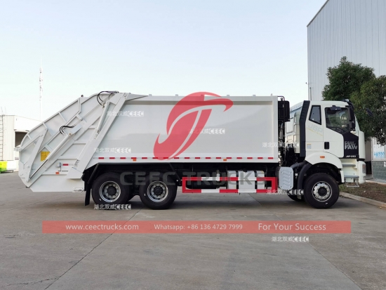 Xe ép rác FAW 20cbm, khung xe tải hạng nặng FAW 6Ã4 dẫn động bên trái, trang bị động cơ diesel XICHAI 350HP, hộp số 12 cấp NHANH CHÓNG. Hệ thống điều khiển CAN-bus để vận hành dễ dàng. Tất cả các bức tranh và logo dựa trên yêu cầu của khách hàng.