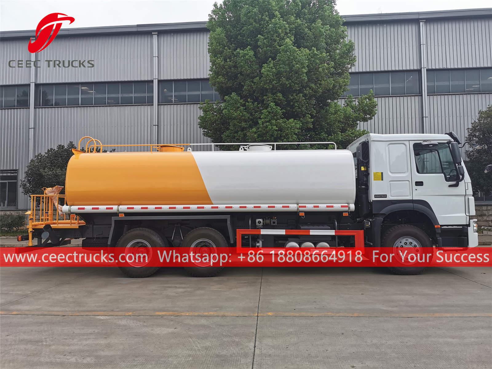 Xe phun nước 18CBM HOWO (còn gọi là Xe tải nước 18.000 lít, Xe phun nước hoàn toàn mới, Xe tưới nước HOWO 6 * 4, Nhà sản xuất xe bồn nước Trung Quốc, Cần bán xe tải chở nước) được sử dụng để xả đường, phủ xanh cây cối và bãi cỏ, vệ sinh nhà cao tầng, xây dựng đường và nhà máy. Nó có chức năng xả nước, tưới nước, vận chuyển nước và chữa cháy.