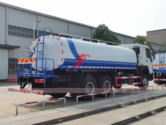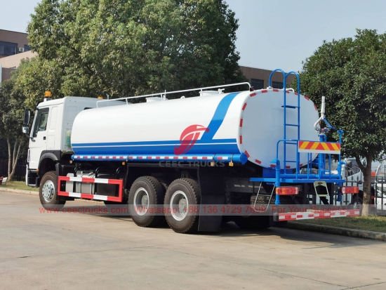 Xe phun nước HOWO 20.000L, khung gầm HOWO 6x4, hộp số sàn 10 cấp, động cơ diesel WEICHAI 336HP, nước thương hiệu nổi tiếng bơm, với vòi phun phía trước, giữa và phía sau tùy chọn. Tất cả các bức tranh và logo tùy theo yêu cầu.