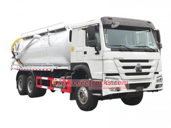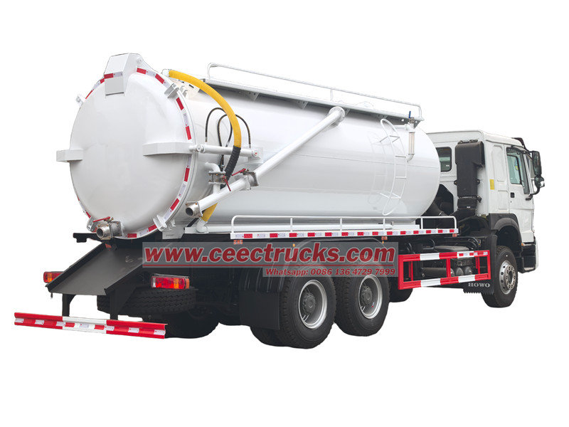 Xe bơm bể phốt Howo 20 cbm (còn gọi là xe hút bụi, xe thông cống, xe hút nước thải, xe hút nước thải gắn trên xe tải, v.v.) được sử dụng để thu gom, vận chuyển và xả chất lỏng như nước bẩn, bùn, bể phốt, dầu thô và các chất rắn như đá nhỏ, gạch. Thích hợp để làm sạch cống rãnh, hố xí, rãnh thoát nước, v.v.