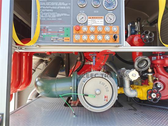 3.Hiệu suất của hệ thống bơm và báo cháy: Hệ thống bơm hiệu suất cao là trái tim của xe cứu hỏa. Hệ thống bơm của xe cứu hỏa Howo có thể cung cấp lưu lượng 60L/giây@10bar, rất quan trọng trong hoạt động chữa cháy. Đồng thời, chiều cao hấp thụ nước là 9 mét và thời gian phân luồng nước ≤35 giây cũng đảm bảo khả năng thích ứng trong nhiều môi trường phức tạp khác nhau. Màn hình báo cháy gắn trên đỉnh (chẳng hạn như phạm vi nước ≥55m và phạm vi bọt ≥45m trong trường hợp này) giúp tăng cường đáng kể tính linh hoạt và hiệu quả của công tác chữa cháy.