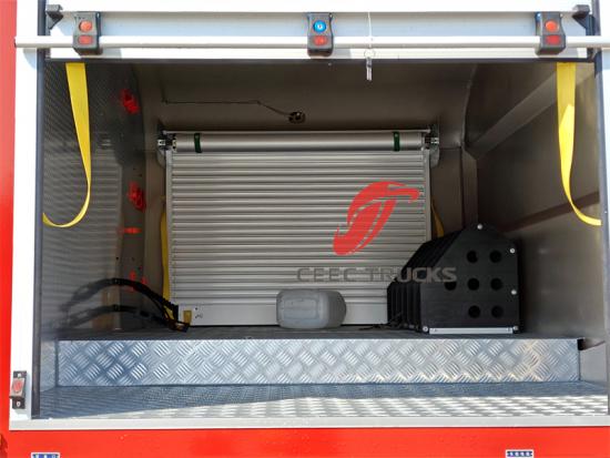 4. Cấu trúc thân xe và công nghệ vật liệu: Cấu trúc thân xe cứu hỏa có liên quan trực tiếp đến độ bền và chức năng của xe. Khung xe được làm bằng thép đặc biệt có độ bền cao và khoang thiết bị được làm bằng hợp kim nhôm không chỉ đảm bảo độ bền mà còn đạt được trọng lượng nhẹ. Thiết kế chống gỉ (như cấu trúc hợp kim nhôm không bao giờ gỉ) kéo dài tuổi thọ của xe cứu hỏa Howo. Ngoài ra, các thiết kế chi tiết như cửa chớp cuốn có máng xối và bàn đạp chống trượt có thể chịu được 300kg đều phản ánh các cân nhắc về sự an toàn và tiện lợi khi sử dụng.