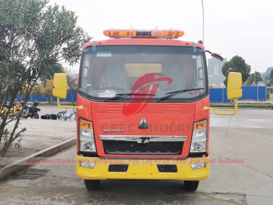 Xe quét đường HOWO 5000 lít, khung gầm HOWO 4x2 tay lái bên phải, số sàn 6 cấp hộp số, động cơ diesel YUNNEI 116 HP, thùng chứa bụi inox và nước sạch thân xe, hệ thống 4 chổi than của Italy Motor, có cabin điều khiển điện cho hoạt động thuận tiện. Tất cả các bức vẽ và logo phụ thuộc vào yêu cầu.
