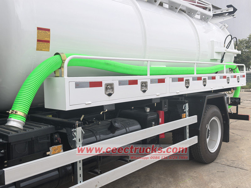 ➤ Xe bơm hút chân không Howo sử dụng bình chứa bằng thép carbon hoặc thép không gỉ chất lượng cao, được xử lý chống ăn mòn và gỉ sét. Điều này đảm bảo hoạt động không bị rò rỉ trong quá trình hút và vận chuyển, đồng thời mang lại hiệu suất môi trường vượt trội.
