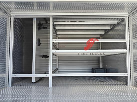 Bảng điều khiển bơm nước bằng tiếng Anh, chắn bùn phải màu đen, có đèn báo động, thang tháo rời, hộp thiết bị phía sau thân xe theo hướng nghiêng lên khoảng 45 độ, tất cả các giao diện của xe và phụ kiện đều là của Anh, có cuộn ống áp suất cao màu đen dài 30m |