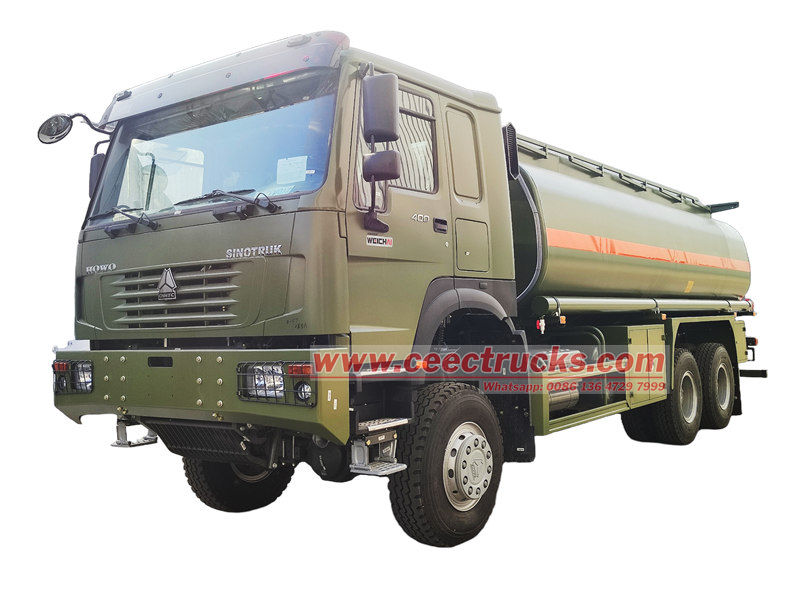 4x4 8x8 drive avaiableXe tải chở nhiên liệu di động quân sự HOWO 6x6, còn gọi là xe bồn chở dầu, là thiết bị quan trọng để vận chuyển và cung cấp nhiên liệu. Dựa trên khung gầm xe tải, nó được trang bị một bồn chứa dầu lớn. Bồn chứa chắc chắn và được niêm phong tốt, có thể chứa một lượng lớn nhiên liệu. Xe được trang bị các thiết bị cốt lõi như hệ thống bơm và máy tiếp nhiên liệu, có thể cung cấp nhiên liệu chính xác và hiệu quả cho các loại xe, thiết bị kỹ thuật hoặc máy móc. Đồng thời, để đảm bảo an toàn, Xe bơm xăng lưu động HOWO cũng được trang bị thiết bị chống tĩnh điện, van thở, bình chữa cháy, v.v.