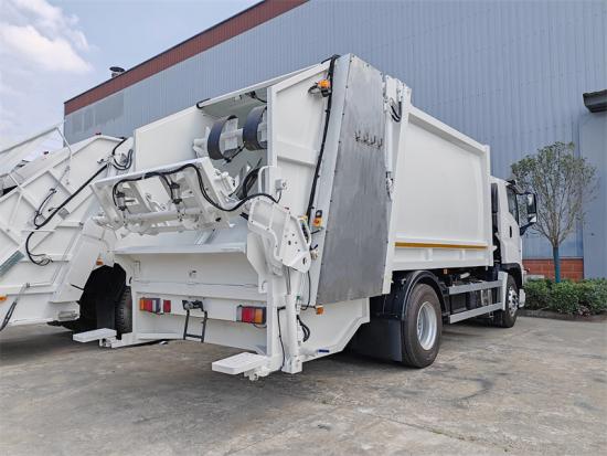 Rear tilting device for 360L and 1100L metal binsCái Howo NX garbage rear loader truck is a high efficiency equipment specifically designed for urban waste management. It employs advanced comp actor technology to significantly reduce the volume of garbage, thereby enhancing transportation efficiency, decreasing the number of transport trips, and lowering operational costs. Built on the Howo NX heavy chassis, the garbage rear loader is equipped with a 370 HP Howo engine and HW 10 -speed transmission, offering robust power performance and stable driving capabilities. With its compact design and easy operation, the Howo NX 16CBM garbage compactor is suitable for garbage collection and transportation in various environments, including cities and townships.