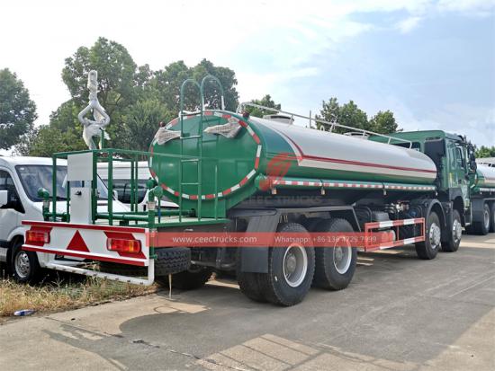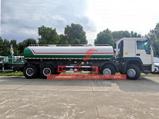 Xe bồn chở nước Howo 8x4 được trang bị động cơ 4 xi-lanh thẳng hàng, 6 thì WP10.380E53 với công nghệ siêu nạp, làm mát trung gian và làm mát bằng nước. Động cơ này sản sinh công suất 380 mã lực và mô-men xoắn cực đại 1550 Nm, đạt được tại 1500 vòng/phút và đạt định mức tại 1900 vòng/phút, đảm bảo sức mạnh vượt trội của xe bồn chở nước hạng nặng Howo khi khởi hành và leo dốc. Cabin Howo được trang bị một Và Một một nửa Thiết kế hàng ghế với hai chỗ ngồi và một giường ngủ. Được trang bị điều hòa và radio, thuyền mang đến môi trường lái xe thoải mái, đồng thời hỗ trợ các chuyến vận chuyển đường thủy đường dài.