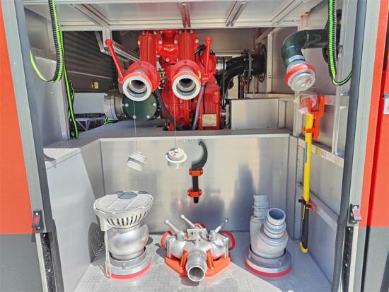 Máy bơm chữa cháy hiệu suất cao– Có máy bơm chữa cháy CB10/80 với công suất 4.800 L/phút ở áp suất 10 bar, đảm bảo xả nước/bọt mạnh mẽ và đáng tin cậy. Có thể lựa chọn máy bơm chữa cháy thương hiệu Darley và HALE