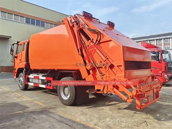 ♦ Xe chở rác phía sau Howo có thân thùng chứa cong 15CBM (dày 4mm) được làm bằng thép đặc biệt Q235 và quy trình đúc tích hợp.
