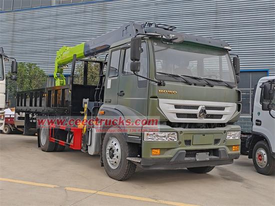 Xe cẩu gắn trên xe tải HOWO 4x2 8 tấn do POWERSTAR sản xuất có khung gầm với chiều dài cơ sở 4500mm và được trang bị động cơ Sinotruk MC05.21-50 Euro V công suất 210 mã lực và mô-men xoắn cực đại 830N.m, hộp số DC7J100TC và thùng hàng dung tích lớn với bốn mặt và năm độ dày ở đáy. Xe được trang bị cần cẩu cánh tay thẳng 4 đoạn XCMG KSQS200 có trọng lượng nâng tối đa 8 tấn và xoay hoàn toàn 360 độ. Xe được trang bị 4 chân chống thủy lực. Xe có ba cần điều khiển thủy lực bằng tay để điều khiển việc kéo dài và thu lại theo chiều dọc và chiều ngang của chân chống thủy lực, việc kéo dài và thu lại của cần trục và việc kéo dài và thu lại của móc.