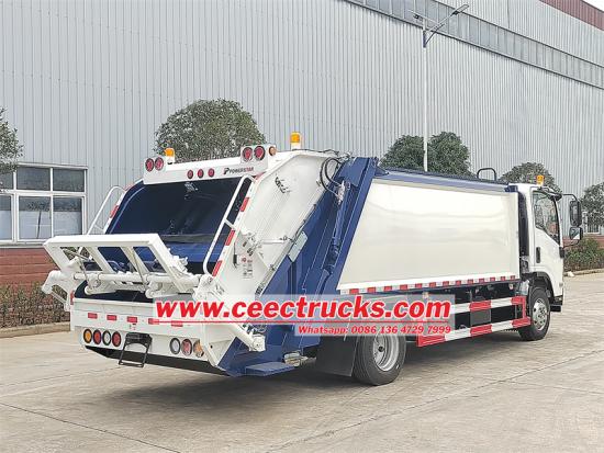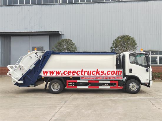 Isuzu 700P chassis,10cbm garbage capacityXe tải thùng rời Isuzu 10 CBM là mẫu xe nén rác có đặc điểm là tốc độ nén ấn tượng, khả năng tải đáng kể, hiệu quả vận hành nhanh chóng và độ ồn thấp.Được hỗ trợ bởi sức mạnh vượt trội của nó động cơ diesel, cơ cấu tải phía sau được vận hành bằng hệ thống thủy lực. Cánh tay thủy lực có nhiệm vụ nâng và đổ thùng rác, đồng thời hệ thống nén bên trong nén chặt thùng rác từ đó tăng khả năng chịu tải và tối ưu hóa hiệu quả xử lý rác thải.