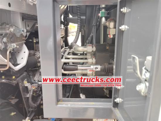 Bên trong thùng xe tải, hệ thống máy đầm mạnh mẽ đảm bảo chất thải được nén chặt, tối đa hóa khả năng chịu tải và giảm số chuyến đi cần thiết.
