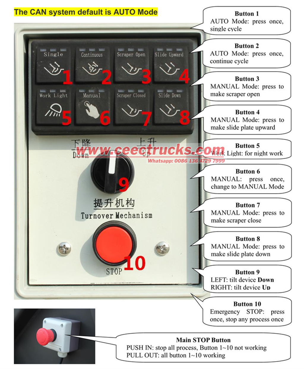 7 Các hoạt động tải và dỡ hàng được hoàn thành tự động và không ai sẽ điều chỉnh nó mà không có sự cho phép Khi tốc độ của PTO quá cao, bộ phận công suất bơm PTO hoặc nhiên liệu sẽ bị hỏng và khi tốc độ quá thấp, hiệu suất hoạt động sẽ bị ảnh hưởng;