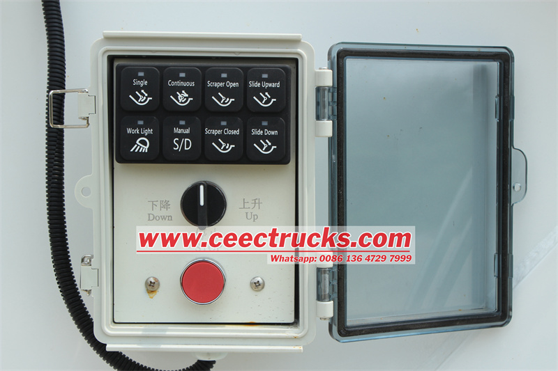 4 Cần chú ý đến hoạt động nén và làm đầy, và trong trường hợp bất kỳ thùng rác lớn nào quá lớn để được nén, người vận hành sẽ dừng kịp thời, và sau đó tiếp tục làm việc sau khi dọn rác như vậy, nếu không, thiết bị làm việc của xe tải có thể bị nguy hiểm;