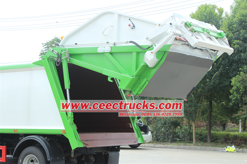 Rear loader hopper for 240L and 1100L binsXe nén chất thải Isuzu được sửa đổi từ khung gầm xe tải ISUZU NPR của Nhật Bản với thân máy nén thép đặc biệt có độ bền cao T420, độ dày cho 4mm bên và pho 4mm, ngăn có trọng lượng nhẹ nhưng mạnh mẽ, và thiết kế được niêm phong hoàn toàn của nó đảm bảo rằng rác vẫn bị bao bọc trong quá trình nén, tải và vận chuyển, ngăn ngừa hiệu quả Với tỷ lệ nén vượt quá 2 5, cùng một khối lượng ngăn có thể chứa nhiều rác hơn, tăng đáng kể hiệu quả vận chuyển Công suất đuôi không dưới 0 8 mét khối và kết hợp với hệ thống xả nhanh, thời gian xả không quá 45 giây, rút ngắn đáng kể chu kỳ xử lý rác Về mặt hoạt động, Xe tải máy nén phía sau ISUZU NPR Hỗ trợ cả hộp số chế độ thủ công và tự động, phục vụ cho các tình huống hoạt động khác nhau và tăng cường tính linh hoạt và thuận tiện hoạt động