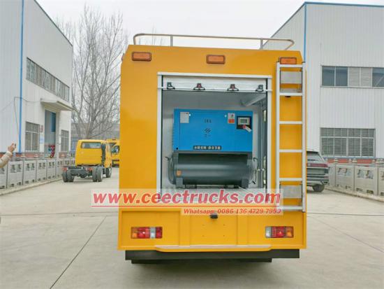 3. Hệ thống cung cấp điện công suất lớn: Xe cứu hỏa lưu động Isuzu được trang bị máy phát điện model HONDA SHT11500 nhập khẩu từ Nhật Bản có tủ điều khiển, có thể cung cấp công suất 11,5kw 220V và 380V, có thể đáp ứng nhu cầu của nhiều thiết bị điện hoạt động cùng lúc.
