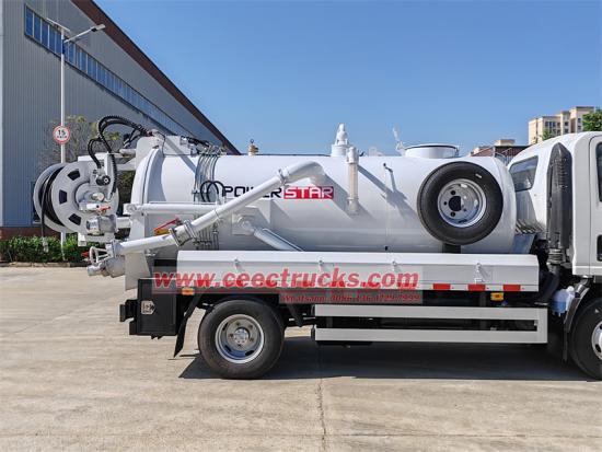 Xe nạo vét kết hợp Isuzu KV100, được cải tiến trên cơ sở khung gầm Isuzu KV100, chiều dài cơ sở 3360mm, động cơ Isuzu 4KH1CN6LB, công suất 120HP, hộp số Isuzu MSB 5 cấp, thân trên là một bồn chứa, chia thành hai phần, bao gồm 3 mét khối bồn chứa nước thải và 1 mét khối bồn chứa nước sạch. Xe được trang bị hai bộ phận lấy điện, các nút bấm nằm ở bên trái và bên phải vô lăng trong cabin. Bên trái điều khiển bồn chứa nước thải và bên phải điều khiển bồn chứa nước sạch. Bồn chứa được trang bị bơm chân không Weilong, bơm nước áp suất cao nhập khẩu, cửa sổ xả nước thải, thang, bộ lọc thứ cấp, hộp đường ống, van xả cửa sau, ống cuộn và xe được điều khiển bằng van vận hành thủy lực thủ công ở phía người lái và hộp điều khiển phía sau bên phải.