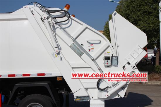 Hộp điều khiển điện tử CAB tích hợp nhiều nút chức năng khác nhau, bao gồm Stop & Start, Power Offeroff, Work Light, Tailgate Lên/Xuống, Chế độ tải, Chế độ phóng điện, Đẩy/Kéo, v.v .. Hộp điều khiển điện tử có thể nhận ra hoạt động tự động của xe rác, như điều khiển xe cab