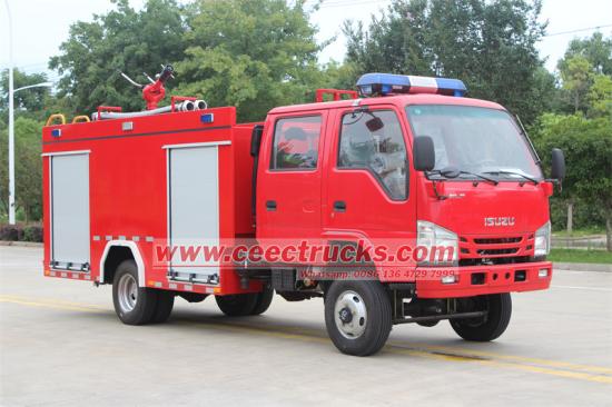 Xe cứu hỏa chở nước CEEC5070GXF lắp trên khung gầm xe cứu hỏa mini ISUZU, cabin Isuzu thương hiệu Nhật Bản nguyên bản có 4 cửa mở, ghế ngồi SCBA phía sau phù hợp với bình dưỡng khí. Công suất động cơ diesel model 4KH1CN6LB là 88kW/120HP mã lực, đáp ứng tiêu chuẩn khí thải Euro 6, hệ dẫn động địa hình 4x4 tùy chỉnh có thể vượt qua điều kiện đường rất gồ ghề. Khung gầm được trang bị nhiều thiết bị phanh như hệ thống chống bó cứng phanh ABS. Thể tích bình nước được thiết kế 3.000kg, tất cả làm cho xe cứu hỏa địa hình Isuzu là một phương tiện được thiết kế chủ yếu cho hoạt động chữa cháy để dập tắt đám cháy hiệu quả nhằm ngăn ngừa cháy lan, giảm thiểu tối đa thiệt hại do hỏa hoạn gây ra.