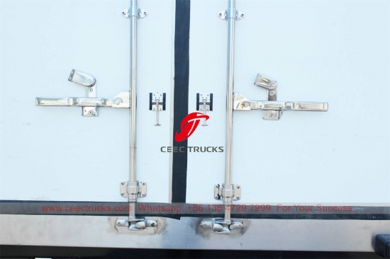 â¶ Kết cấu thùng xe tải lạnh là kết cấu bánh sandwich: Sợi thủy tinh + PU + sợi thủy tinh. Tất cả các tấm và cửa polyurethane dạng sandwich hai mặt đều có độ dày 100mm, độ dày tấm sợi thủy tinh là 2,5mm cho lớp da bên ngoài và bên trong; mật độ bọt polyurethane là 45-50kg/m3. (Tất cả đều là vật liệu tốt nhất ở Trung Quốc và có hiệu suất cách nhiệt tuyệt vời).