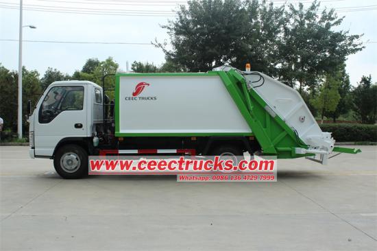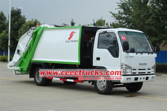 ISUZU 5 mét khối xe tải rác máy nén là một bộ sưu tập rác, nén và chuyển xe được thiết kế đặc biệt Xe tải rác phía sau isuzu 5cbm là một chiếc xe tải rác nén với thương hiệu isuzu Mini ELF 4x2 tay lái tay trái và khối lượng cơ thể khoang 5 mét khối Bộ nạp phía sau Isuzu này nén rác thông qua cơ chế nén để giảm thể tích rác, do đó làm tăng khả năng tải và hiệu quả vận chuyển của rác