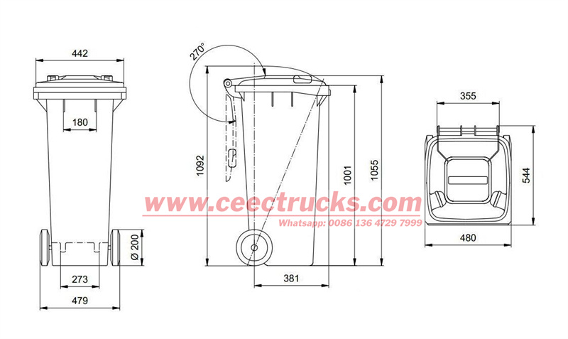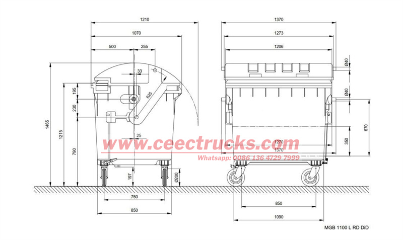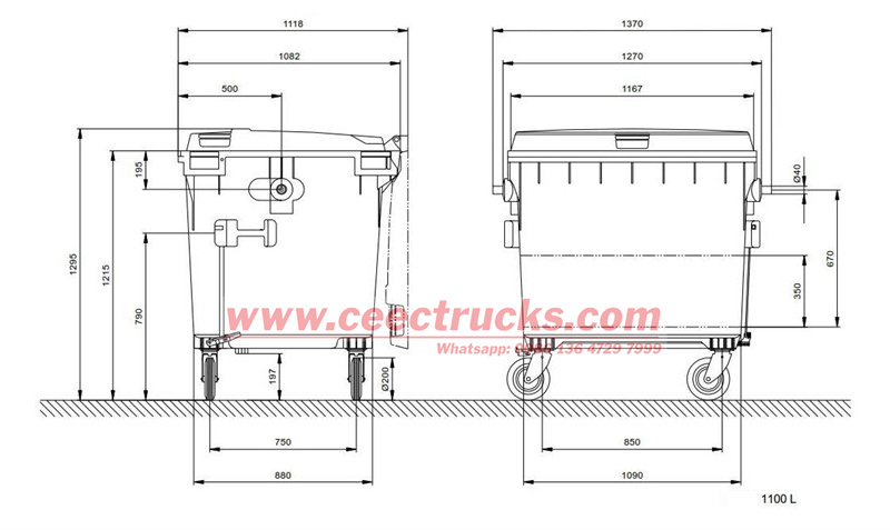 | Đằng trước | Khoảng 230L, ở phía trước của xe rác | |