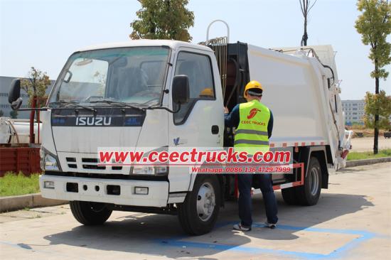Rear tilting device for 240L and 1100L binsXe tải rác phía sau thành phố Isuzu 6 Wheeler Cũng có thể được gọi Xe tải rác isuzu nkr 6cbm từ chối, cái mà là một chuyên gia mạnh mẽ Xe xử lý rác. Xe tải máy nén phía sau ISUZU 6CBM được sản xuất bởi xe tải CEEC được trang bị khung gầm ISUZU 4X2 ELF 600P, ISUZU 120HP Động cơ diesel 4kh1, động cơ AC-COWER Chiếc xe tải có 3 chế độ hoạt động, bao gồm điều khiển điện CAN-BUS trong xe taxi, cần điều khiển thủy lực, hộp điều khiển điện CAN-BUS trong Tailgate