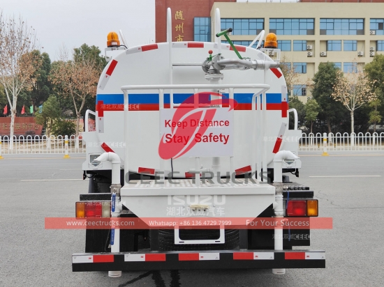 Xe phun nước ISUZU (còn gọi là Xe bồn chở nước ISUZU, xe phun nước ISUZU, xe cung cấp nước ISUZU, xe phun nước ISUZU, xe chở nước ISUZU chuyên dụng) là được sử dụng để xả đường, phủ xanh cây cối và bãi cỏ, vệ sinh nhà cao tầng, xây dựng đường và nhà máy. Nó có chức năng xả nước, tưới nước, vận chuyển nước và chữa cháy.