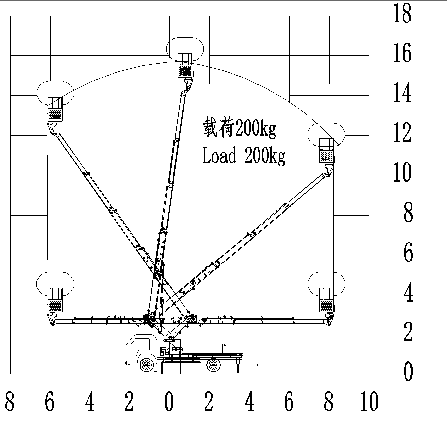 ● Boom và Outriggers lồng vào nhau, Outriggers có thể được vận hành riêng biệt với sự an toànđiều tra