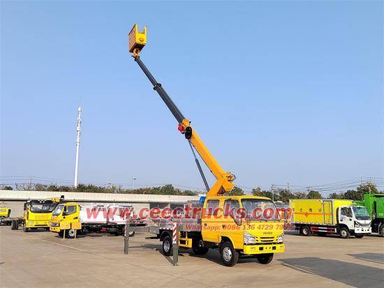 ISUZU Double Cabin 2+4 Ghế xe tải Nền tảng trên không, sử dụng hệ thống điều khiển từ xa hoàn toàn tự động, được trang bị bộ điều khiển thông minh và LCD, nhằm mục đích nhận ra điều khiển biên độ, điều khiển tự động, tải, biên độ, hiển thị chiều cao và thông tin hoạt động khác Được trang bị động cơ diesel 4KH1N6MD, 103kW / 140hp và phát thải 2999cc, phù hợp với hộp số thủ công MLD 6 Shift, được gắn với nền tảng làm việc trên không 16M, mô hình làm việc bằng kính viễn vọng và hộp điều khiển từ xa để làm việc thuận tiện.