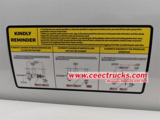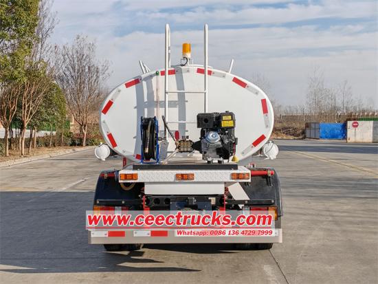 Đối với các hoạt động rắc, chiếc xe tải được trang bị bình nước carbon hình elip với công suất lên tới 5000L Thiết kế này không chỉ làm tăng khả năng lưu trữ nước mà còn làm cho cấu trúc xe tăng nhỏ gọn hơn, tạo điều kiện cho khả năng cơ động nhanh của xe tải trên các đường phố đô thị hẹp Ngoài ra, việc kết hợp máy bơm nước 65QZF-40/50 cung cấp cho xe tải phun nước với áp suất nước mạnh và dòng chảy ổn định, đảm bảo hiệu quả và tính đồng nhất của hoạt động rắc