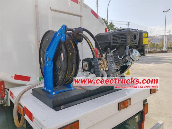 Điều đáng nói là chiếc xe tải cũng được trang bị máy làm sạch áp suất cực cao gắn phía sau Thiết kế sáng tạo này cho phép xe tải phun nước thực hiện làm sạch áp suất cao trong khi rắc, loại bỏ hiệu quả các vết bẩn cứng đầu và tích lũy bụi trên mặt đường Hơn nữa, việc lắp đặt thiết bị phun phía trước mở rộng khu vực bảo hiểm của hoạt động rắc, đảm bảo rằng xe tải có thể thực hiện các hoạt động rắc toàn diện và không có điểm mù, góp phần vào sự sạch sẽ và làm đẹp của môi trường đô thị