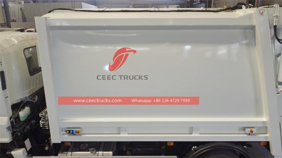 Sau nhiều lần trao đổi với khách hàng châu Âu, các kỹ thuật viên CEEC đã cải tiến thiết kế của thùng chứa rác phía sau và cửa vào thùng, giúp rác thải được xe ép rác Isuzu GIGA đổ vào ban đầu rơi ở vị trí tương đối cao giữa và phía sau thùng. Khi cơ cấu nén di chuyển về phía trước, nó không chỉ có thể đẩy rác theo chiều ngang mà còn nén rác xuống phía dưới một cách hiệu quả, tận dụng tối đa chiều cao và thể tích của toàn bộ thùng, đồng thời cải thiện đáng kể hiệu suất nạp và tỷ lệ nén.