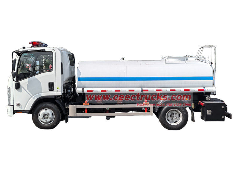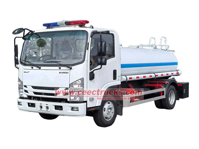 Xe chở nước Isuzu KV100 có vòi phun nước (còn gọi là xe chở nước uống Isuzu, xe bồn chở nước Isuzu, xe chở nước uống Isuzu, xe chở nước Isuzu) được sử dụng để vận chuyển và cung cấp nước, bất kể nước công nghiệp hay nông nghiệp. Bồn chứa được xử lý không độc hại hoặc làm bằng thép không gỉ.