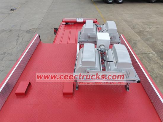Front mounted with 4tons towing winchXe cứu hỏa cứu hộ khẩn cấp loại nhỏ Isuzusử dụng khung gầm xe tải loại II PT1073BUHAY.Xe cứu hỏa Isuzuđược lắp đặt với cabin phi hành đoàn có hai hàng ghế, có thể chở 2+4 hành khách bao gồm cả tài xế.Xe cứu hỏa đa năng ISUZUthoải mái và thuận tiện khi lái xe. Được trang bị tời điện American Champion nguyên bản, có thể kéo khoảng 4 tấn hàng hóa. Sử dụng máy phát điện Honda SHT11500 của Nhật Bản với công suất 10KW. Trên nóc xe cũng được trang bị hệ thống đèn nâng YZH4-5.0CF, có thể nâng lên độ cao 7,6 mét so với mặt đất. Khoang thiết bị là cấu trúc hợp kim nhôm, trong xe có thể chứa không dưới 90 thiết bị cứu hộ khẩn cấp.Xe cứu hỏa cứu hộ Isuzucó vẻ ngoài mới lạ, bố trí khoa học và hợp lý, vận hành thuận tiện và màn hình hiển thị dụng cụ đầy đủ; được trang bị đầy đủ phụ kiện và dụng cụ, sử dụng cấu trúc xoay và kéo, bố trí nhỏ gọn và dễ tiếp cận, giúp đáp ứng gần hơn với nhu cầu chữa cháy thực tế. Do đó,Xe cứu hỏa mini ELF Isuzulà xe chữa cháy chuyên dụng lý tưởng cho lực lượng chữa cháy khẩn cấp và nhiều đội cứu hỏa, cứu hộ chuyên nghiệp.