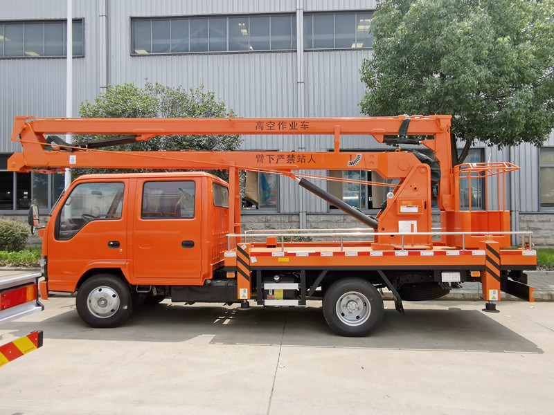 Xe tải trên không isuzu 16m cabin 120hp thuộc về phương tiện làm việc trên không So với loại cánh tay thẳng hoặc kiểu cắt kéo, nó có độ linh hoạt cao hơn và phù hợp cho các hoạt động không gian hẹp Chiều cao hoạt động tối đa là 16 mét và chiều cao nhịp là khoảng 7 5 mét, có thể được trang bị rổ cách nhiệt bao gồm các nhu cầu xây dựng đô thị, bảo trì cầu, lắp đặt điện, v.v Được trang bị khóa thủy lực, bộ giới hạn và hệ thống phanh khẩn cấp, một số mô hình sử dụng các thành phần thủy lực được nhập khẩu (như van tỷ lệ nhạy cảm với tải trọng) và hệ thống điều khiển thông minh để đảm bảo hoạt động mượt mà và an toàn