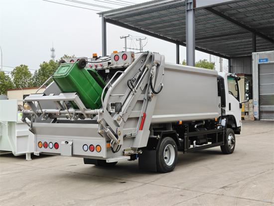 Cơ chế tải, cơ chế treo xô lật phía sau có thể thích ứng với thùng rác tiêu chuẩn 240L hoặc 660L, nhận được tải tự động một nút và hoàn toàn đổ rác trong vòng 15 giây Compdiễn viên Cơ chế, xẻng đẩy và cạp nén rác theo cả hai hướng, tỷ lệ nén có thể đạt tới 1: 3 và chức năng nén nhu động được kiểm soát bởi PLC có thể làm tăng khả năng tải