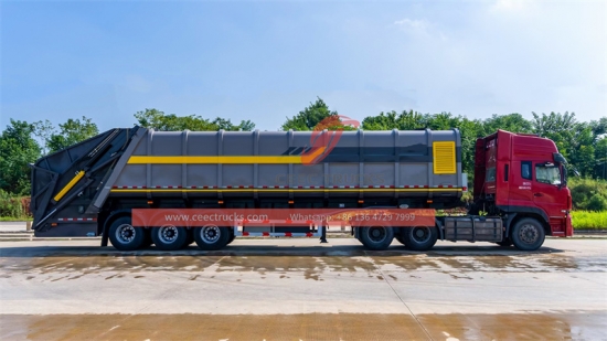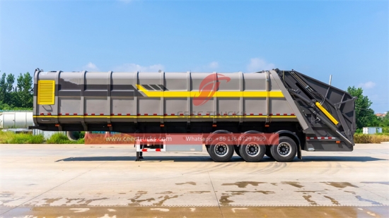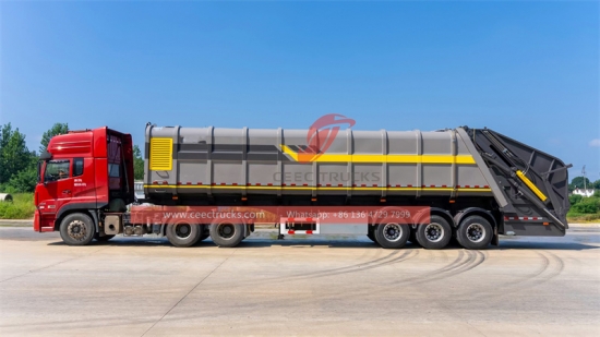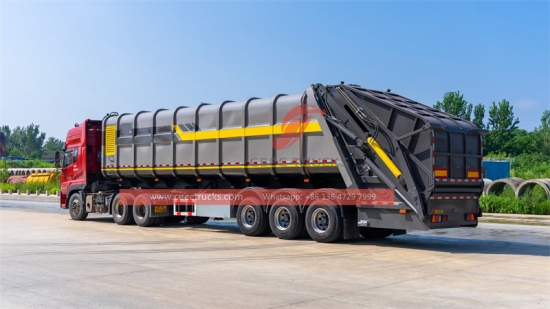 Sơ mi rơ moóc máy nén rác 45CBM tải phía sau (còn gọi là sơ mi rơ moóc nén rác, nửa rơ moóc, máy nén rác