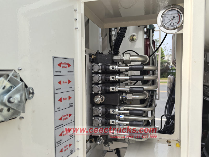 Hệ thống điều khiển của xe ép rác HOWO tận dụng toàn diện các ưu điểm của điều khiển điện, điều khiển khí nén và điều khiển thủy lực. Hệ thống điều khiển điện điều khiển hệ thống điều khiển khí nén, từ đó điều khiển cụm van thủy lực. Hệ thống tận dụng tối đa nhiều kênh để giải quyết hiệu quả vấn đề giao diện giữa hệ thống thủy lực và hệ thống điện. Van đảo chiều có khả năng chống ô nhiễm dầu tốt hơn van đảo chiều điện từ, giúp loại bỏ hiện tượng kẹt van, nâng cao độ tin cậy và hiệu quả sử dụng.